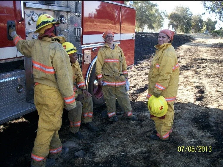 Amika Mota, second from right, fought fires at Central California Women’s Facility Fire Department while she was incarcerated . (Photo courtesy Amika Mota)